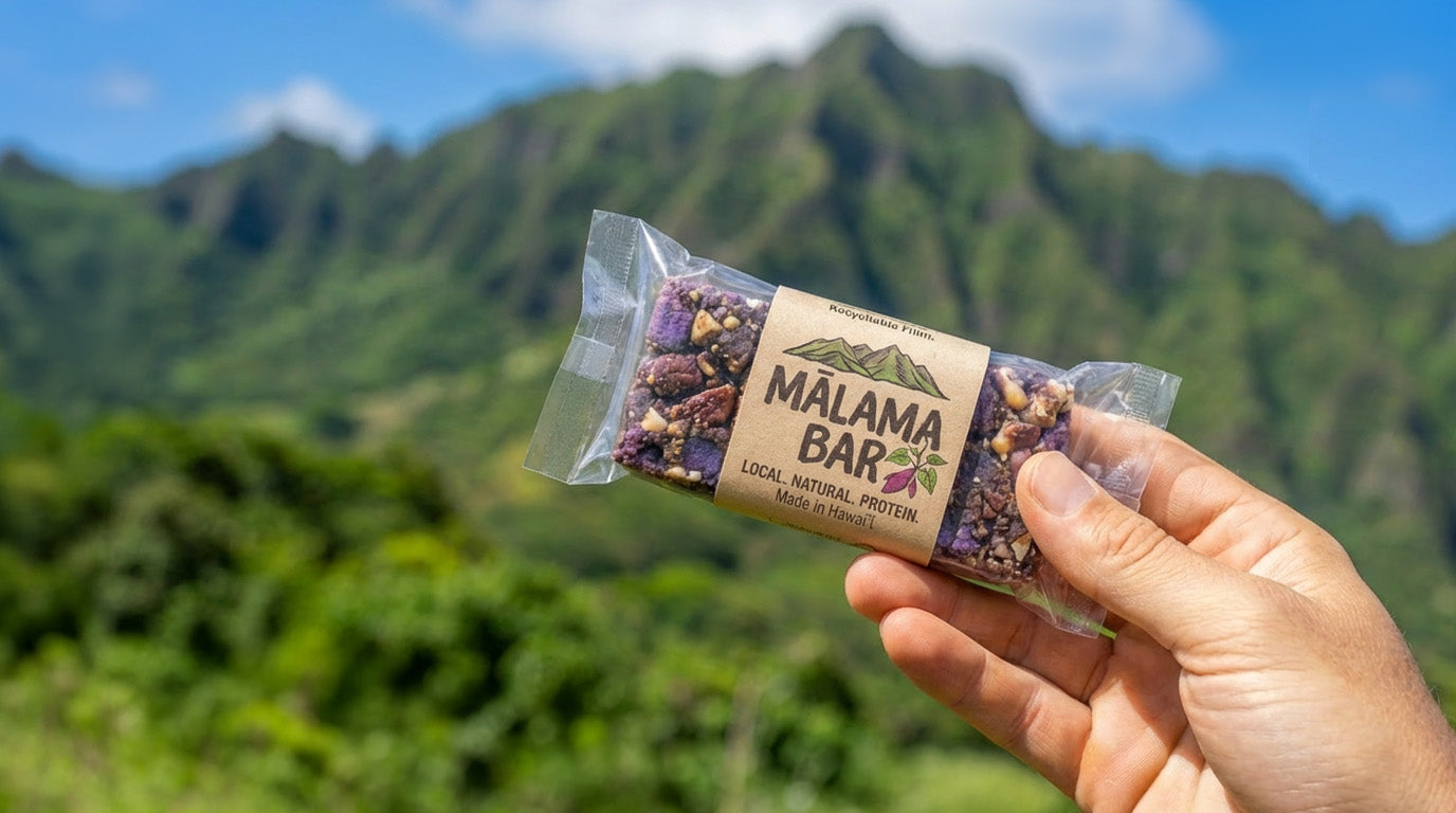 Mālama Bar transforms surplus local produce into healthy snack bars, supporting Hawaiʻi farmers, local jobs, food sovereignty, and community food donations.